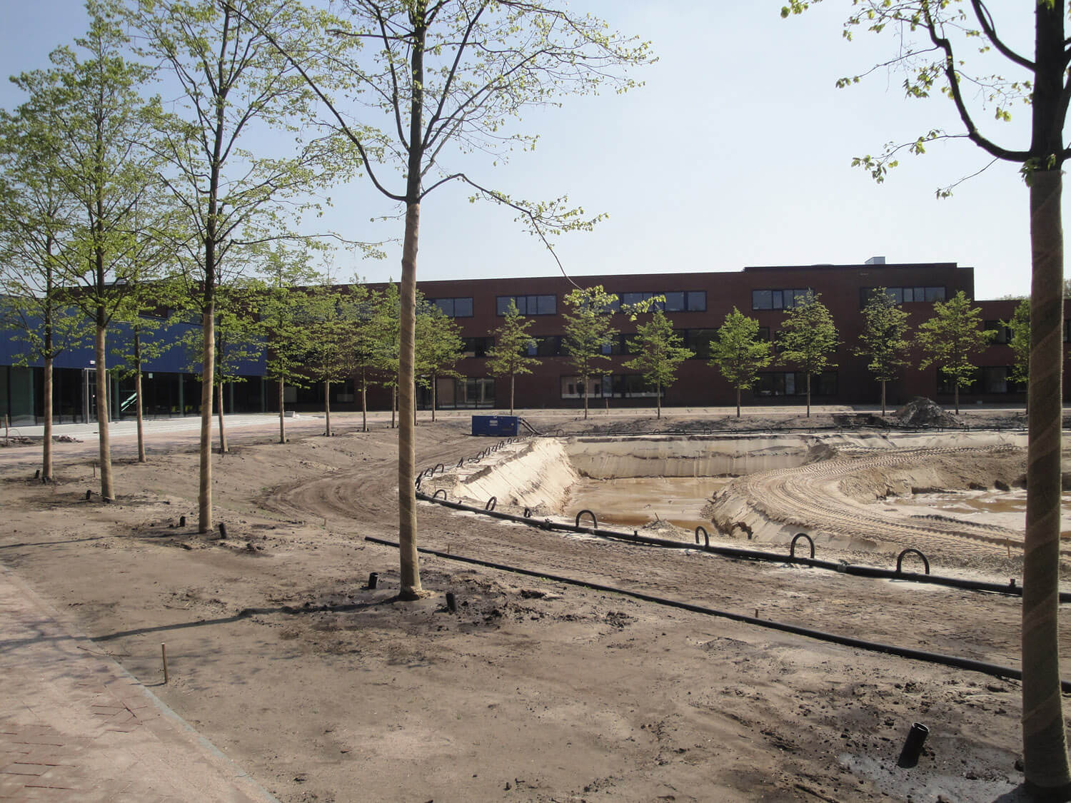 Al jaren verzorgen wij het algehele onderhoud van het Baarnsch Lyceum, een scholengemeenschap voor Gymnasium, Atheneum en HAVO in Baarn. Naast het reguliere onderhoud van het gehele terrein, hebben wij de gehele buitenruimte opnieuw ingericht. De werkzaamheden die hier onder andere zijn uitgevoerd zijn; het verwijderen van de bomen, het inzaaien van het sportveld en het aanleggen van een vijver.