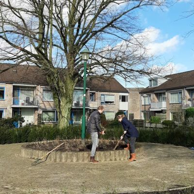 Op het grasveld aan de Fokkerstraat is het gazon verlaagd om regenwater beter in de grond te laten zakken. Ook zijn er rozen , lage vlinderstruiken en een taxushaag geplant. De bloemen van deze struiken trekken heel veel insecten aan. Er is gekozen voor mooie diverse beplanting die de biodiversiteit vergroot. Wethouder Aukje Treep heeft geholpen met het planten van de lage vlinderstruiken . Dit deed zij samen met Jos Ruiter van De Ridder BV Golf-, Sport- & Groenvoorzieningen uit Soesterberg. De komende dagen worden nog wat puntjes op de i gezet, maar we zijn nu al trots op het resultaat.