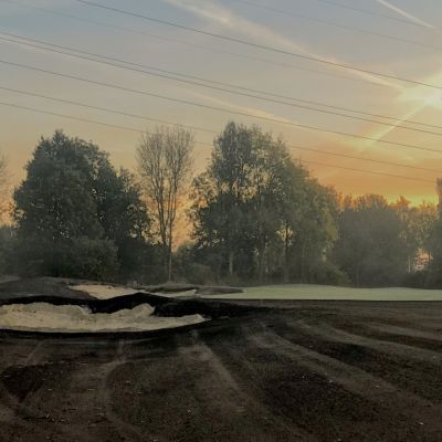 Wat een mooie foto! Hole 2 van golfbaan Anderstein is ingezaaid en klaar voor de opkomst van het gras. We gaan uit van nog een paar groeizame weken!