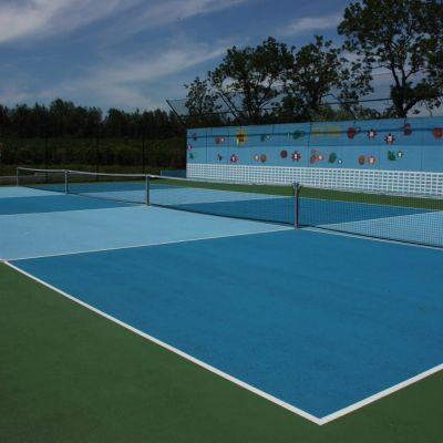 Op deze geweldige kids playground voor tennislessen beleven vele kinderen wekelijks een hoop tennisplezier op LTC Vathorst. Het geheel oogt niet alleen fris en kleurrijk, maar alle kleuren hebben ook een doel. Zo is er makkelijk te onderscheiden hoe de mini baantjes lopen en de stippen op de muur zijn om te leren mikken. Minibaantjes en oefenmuur in één!