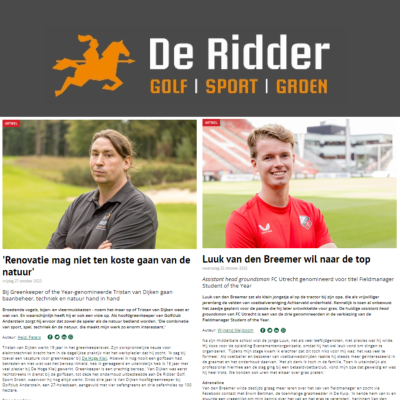 Nog geen drie dagen later hebben we ook nog eens mogen horen dat Tristan van Dijken – namens De Ridder werkzaam als hoofdgreenkeeper op Golfclub Anderstein – is genomineerd als Greenkeeper of the Year.