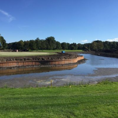 De surroundings van de green van hole 9 zijn gerenoveerd met als meest in het oog springend de nieuwe damwand die daar geplaatst is. Om het gebied zo snel mogelijk weer speelbaar te hebben, hebben wij zoden geplaatst.