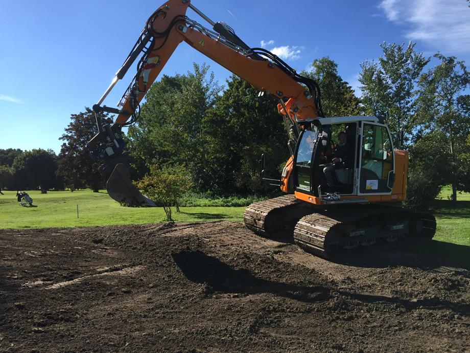 De renovatiewerkzaamheden die wij uitvoeren op Almeerderhout vorderen gestaag. Golfbaanarchitect Bruno Steensels van Mastergolf tekende de aanpassingen, Lambert Veenstra van VAG zorgt voor de engineering en wij voeren de renovaties uit. De afgelopen periode hebben wij onder meer de bunkers van de holes1, 2 en 6 omgevormd. Op de driving range zijn nieuwe, natuurlijke, targets aangelegd in de vorm van greens waar men naartoe kan spelen. Ook de chipping area is op de schop gegaan.