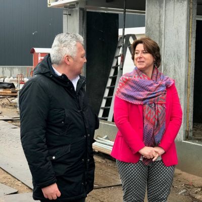 Wethouder Janne Pijnenborg stort beton voor nieuwbouw De Ridder BV